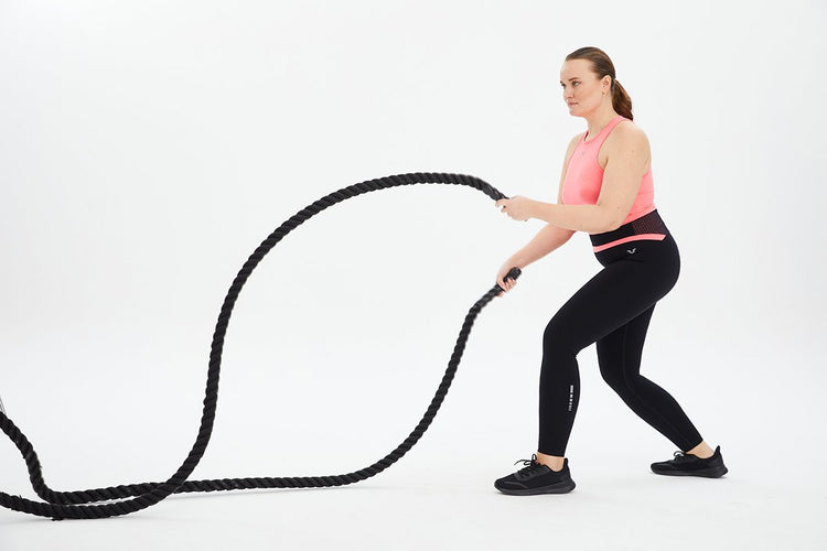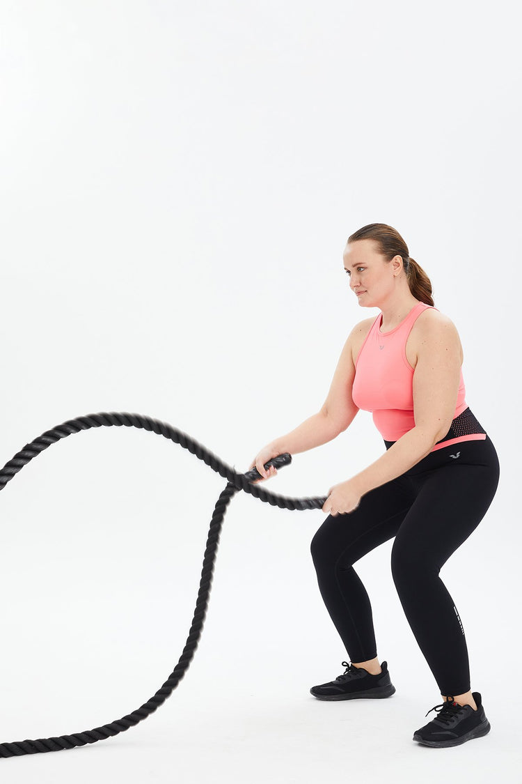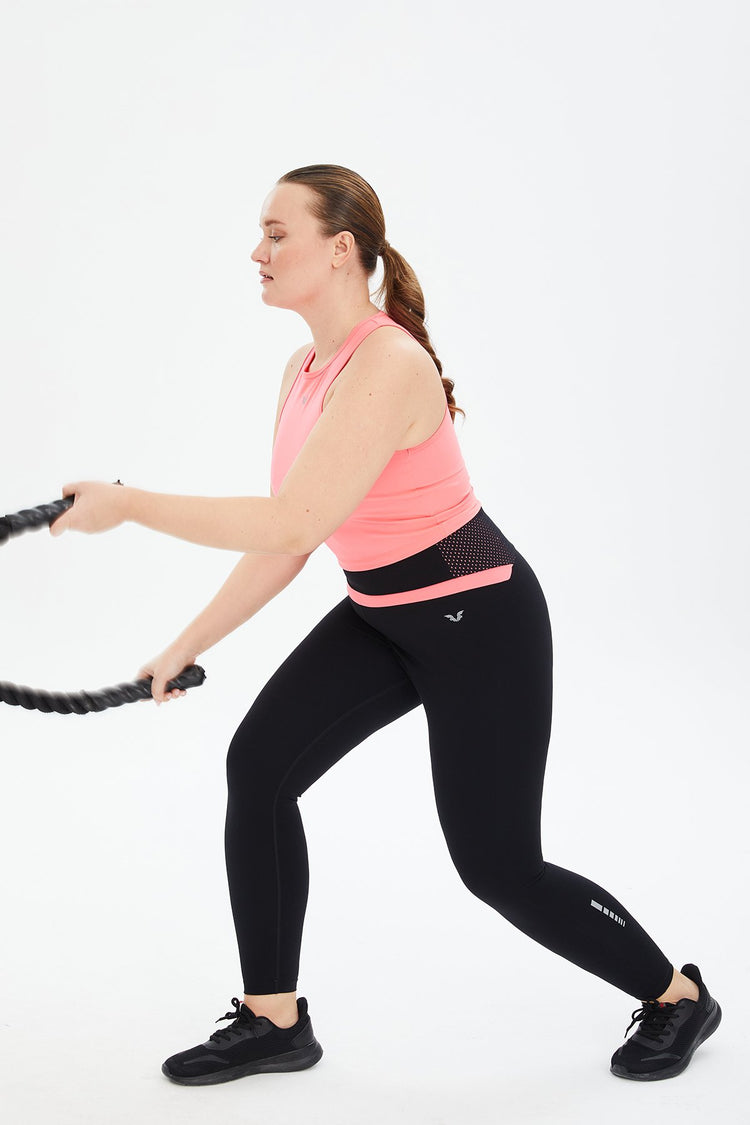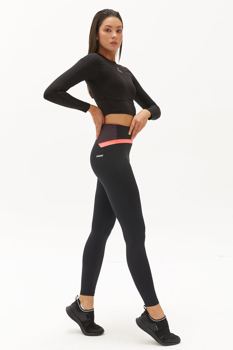 Leggings sportivi prodotti con tecnologia tessile elasticizzata, una miscela di tessuto composta dal 56% di poliammide e dal 44% di elastan, aiutano a regolare la temperatura corporea durante l'allenamento, mantenendoti asciutto e fresco e fornendo libertà di movimento.
